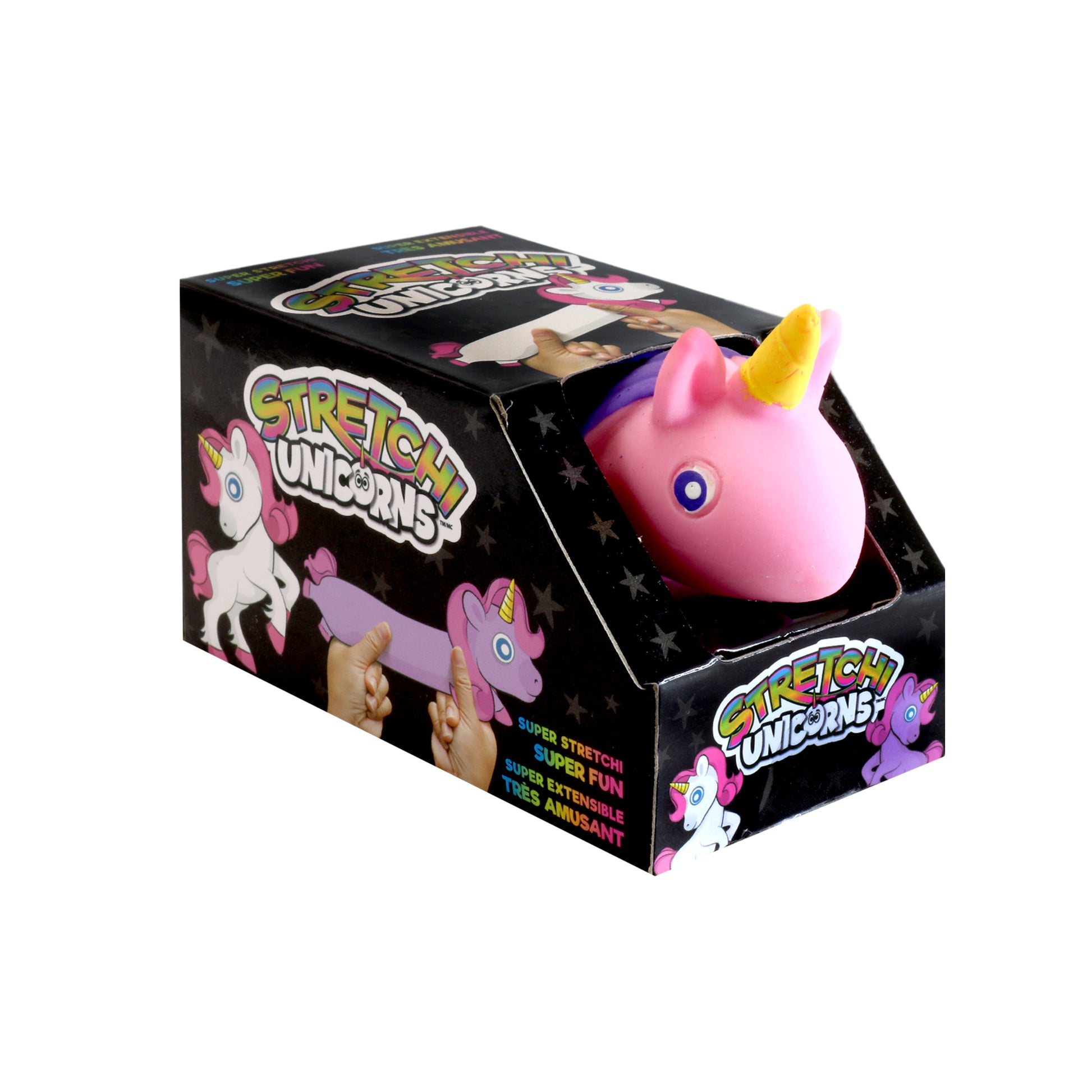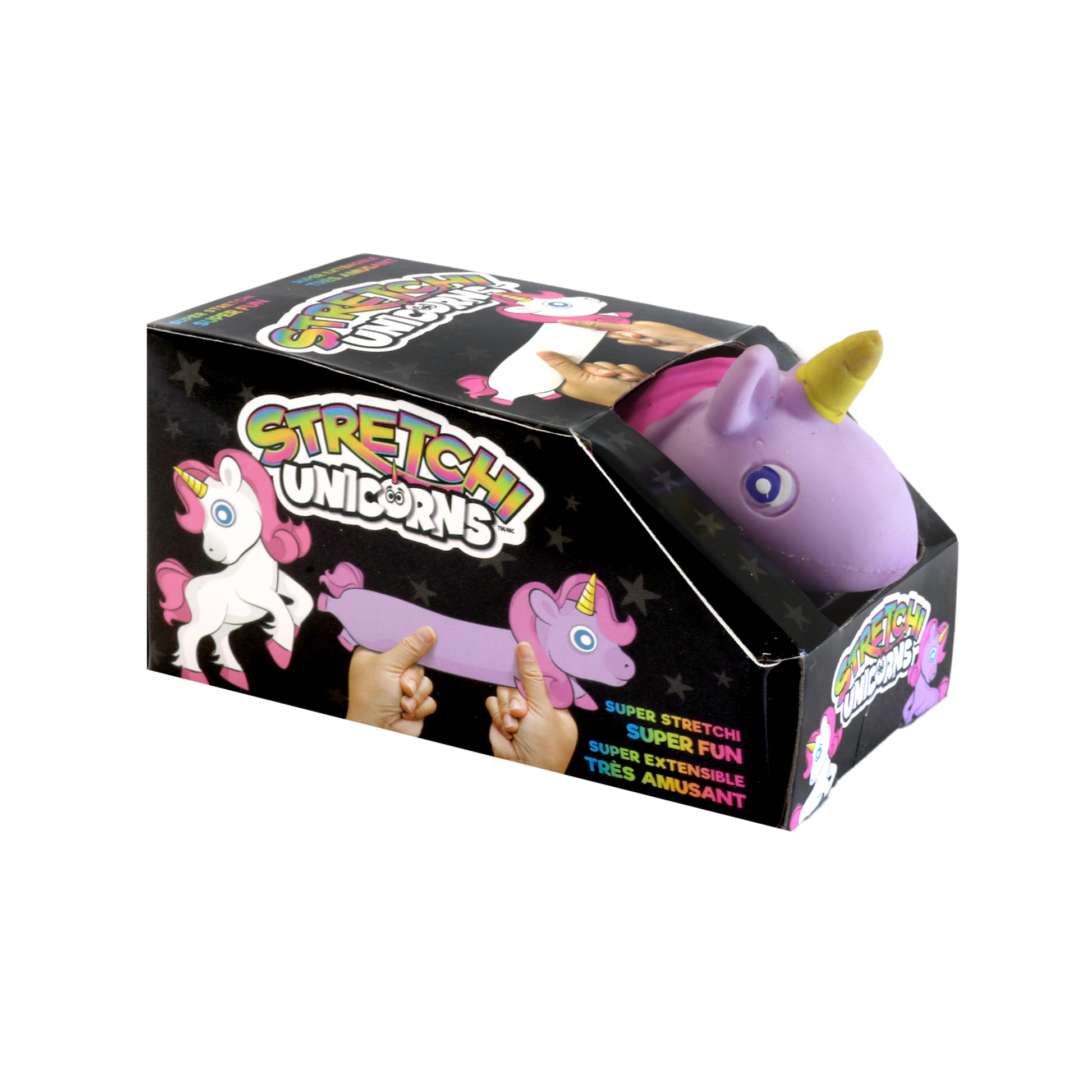 Super Stretchy and Super Cute Stretchi Unicorns will become your favourite toy to stretch. They even come in their own mystical rainbow house! Available in white, pink, purple unicorns.