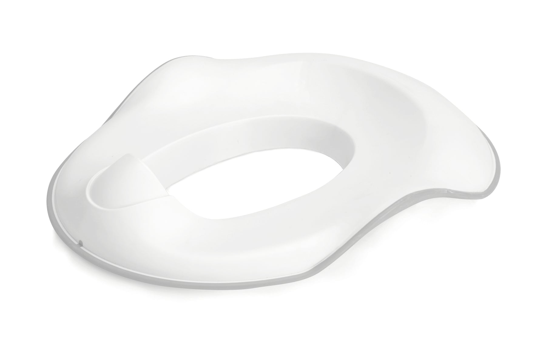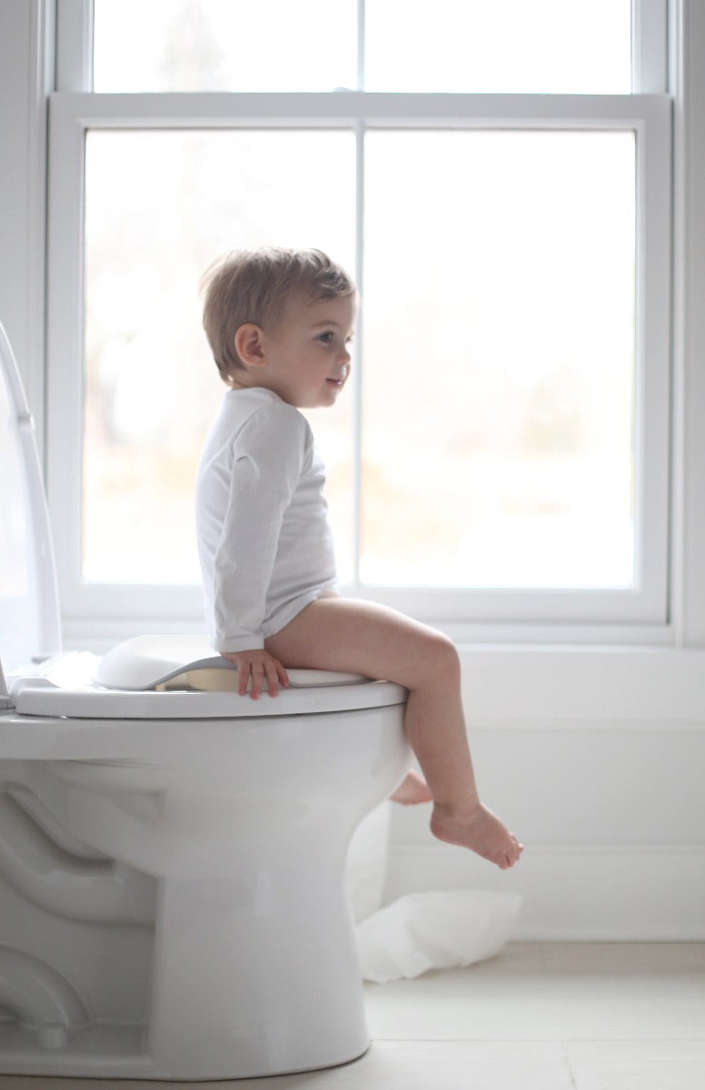 The Ubbi Toilet Trainer is engineered with soft lines for comfort and simplicity. It is equipped with an adjuster that allows a secure and easy fit on most standard and elongated toilet seats. It has integrated handles for an added sense of stability and security with a non-skid edge that is contoured to safely hold the child in place. The toilet trainer also has a built-in splashguard and a practical hanger for extra convenience.
