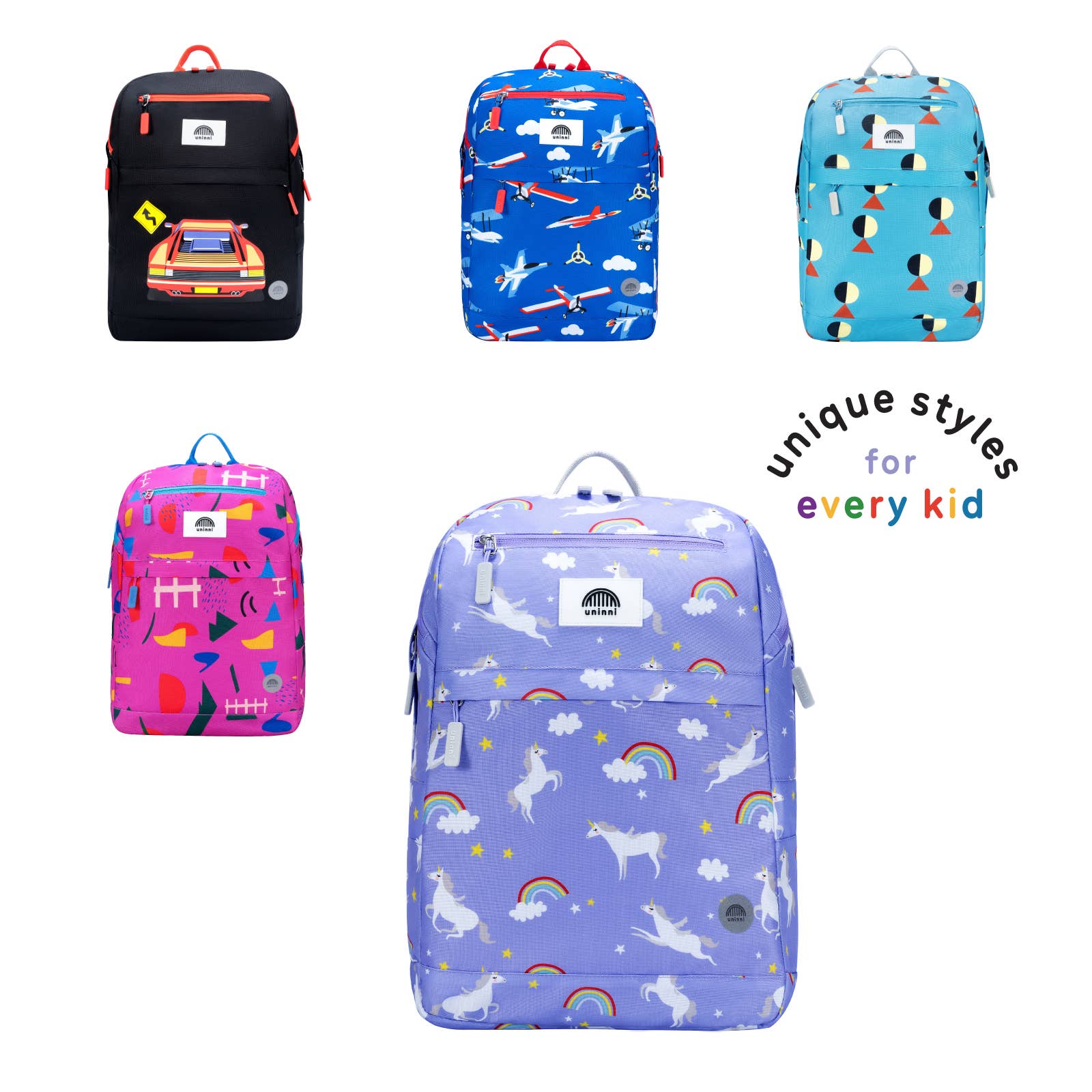 Features: * Adjustable waist support belt, back, and S-shaped shoulder straps are all padded and help distribute weight from shoulders to hips. * Adjustable chest strap helps distribute weight while ensuring the shoulder straps stay in place. * With elastic straps for a uninni pencil case and hidden attachment buckles for your uninni lunch bag, all three can be carried hands-free. * Ample storage compartments, including 2 expandable water bottle holders, and a padded compartment to protect a 15” laptop, make organization easy. * Reflective logo on each shoulder strap and on the front of the backpack, improving visibility on crosswalks and sidewalks at night. * Built-in name tag for easy identification for your kids. * Lightweight and made from durable, water-resistant material, perfect for age 5 and up everyday school and travel.