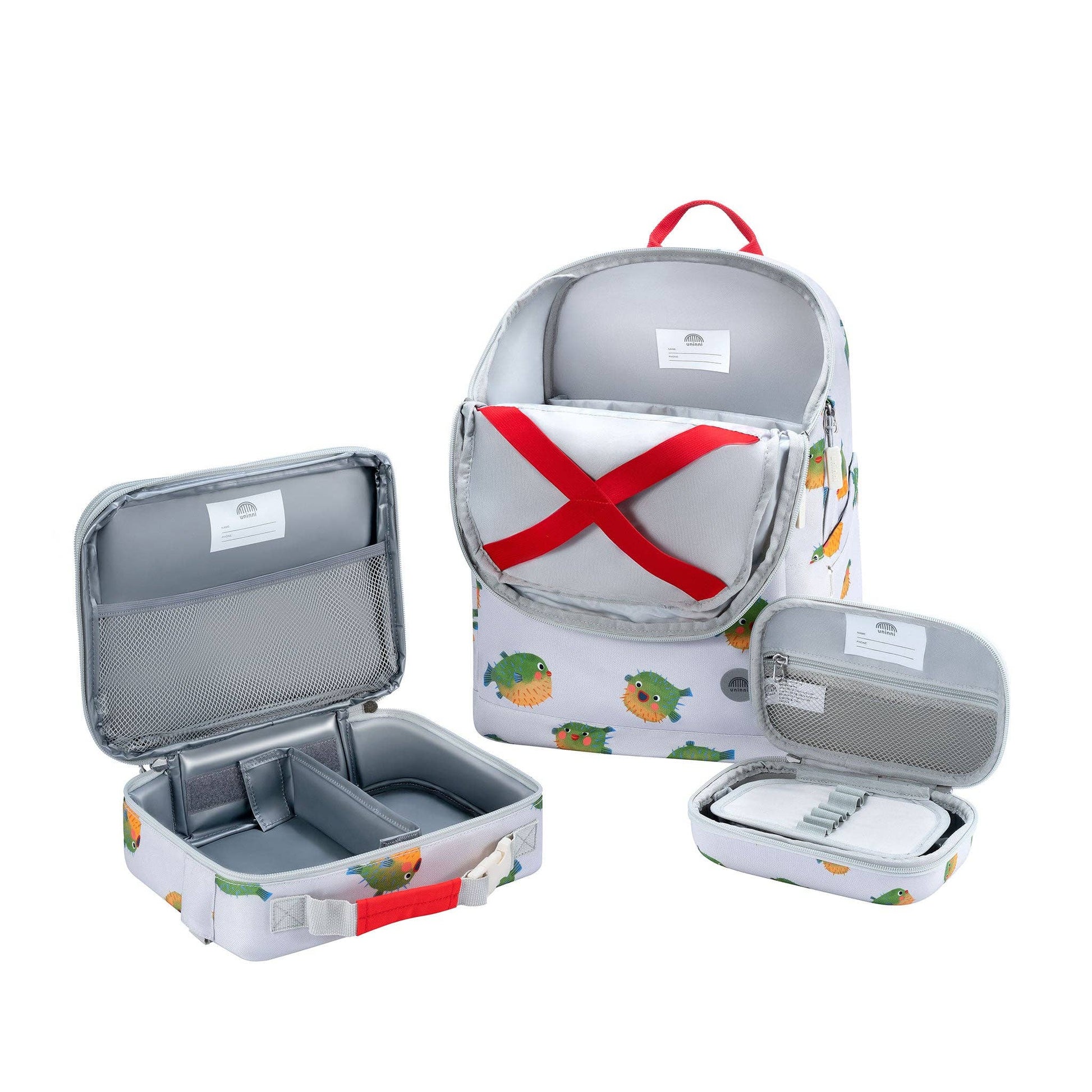 Lunch Bag: Featuring 6 mm of leakproof, PEVA insulated padding, this lunch bag can keep food and drinks fresh for up to 6 hours. With strong metal zippers and extra storage compartments, this lunch bag is made to withstand years of lunchtime fun.