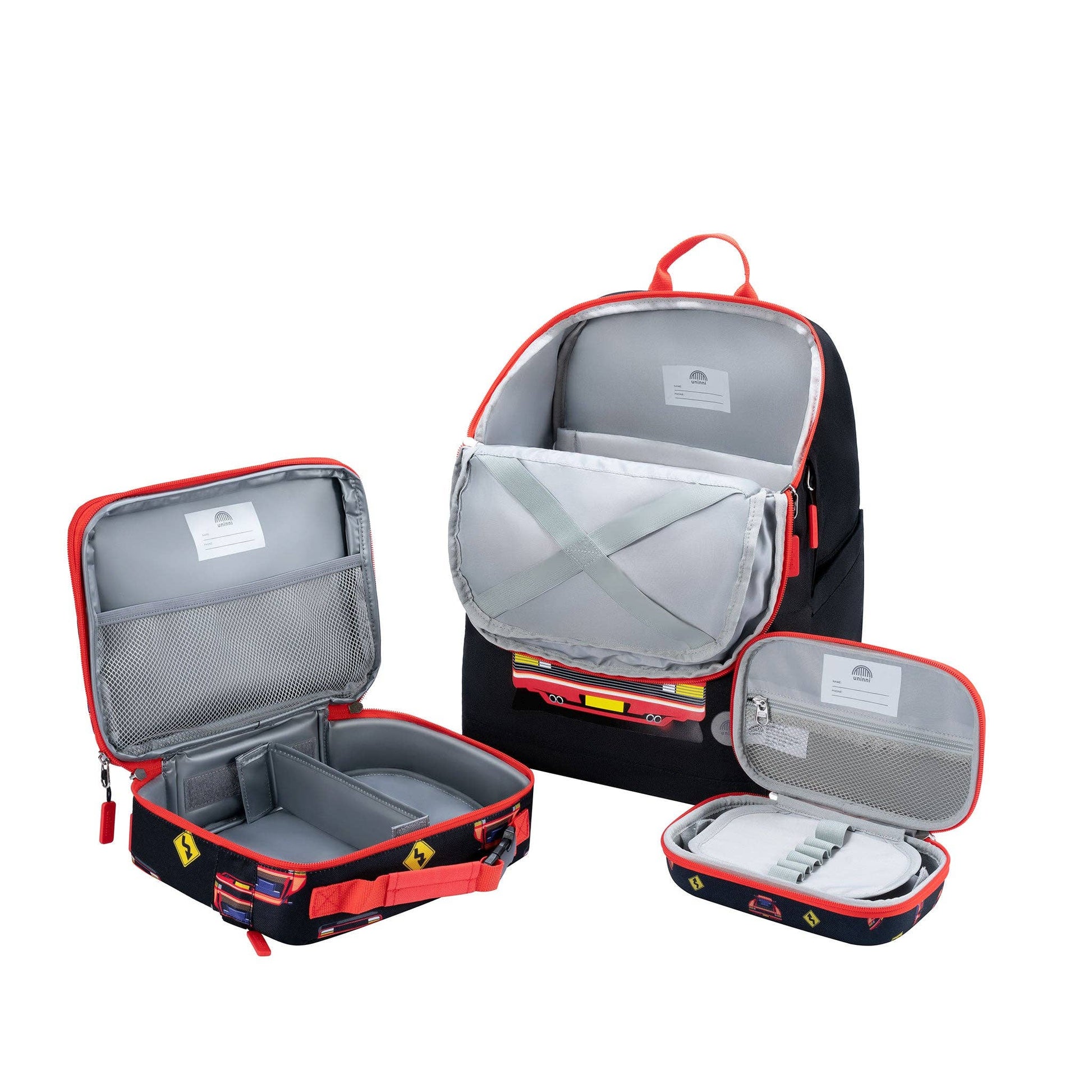 Lunch Bag: Featuring 6 mm of leakproof, PEVA insulated padding, this lunch bag can keep food and drinks fresh for up to 6 hours. With strong metal zippers and extra storage compartments, this lunch bag is made to withstand years of lunchtime fun.